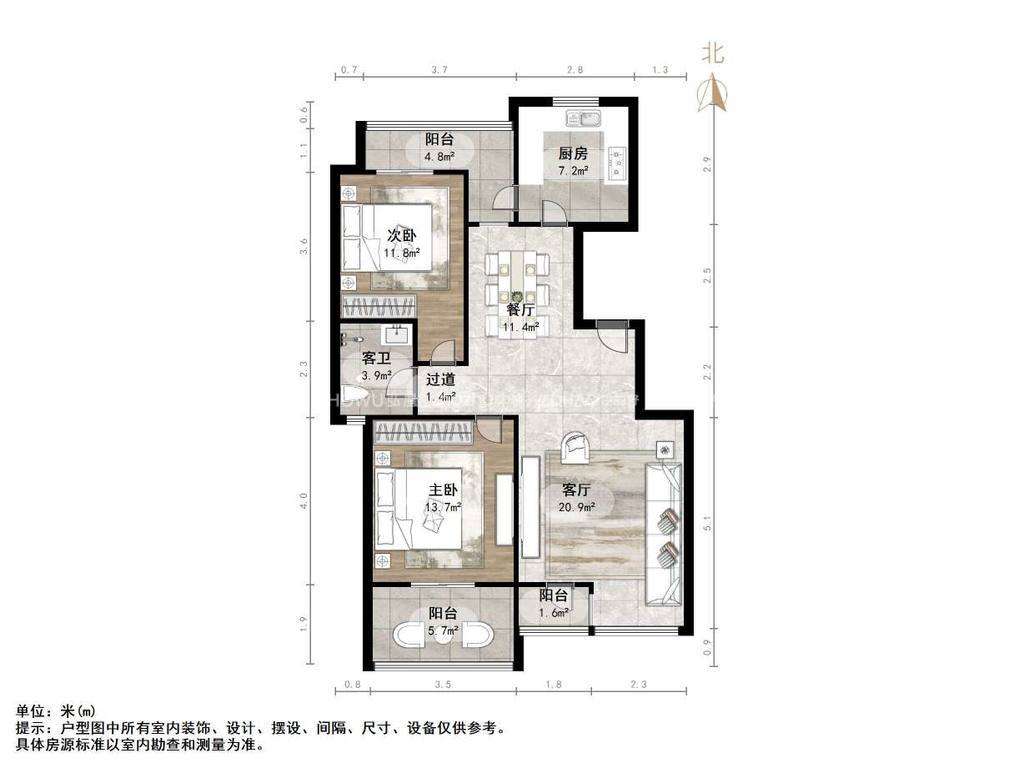 朝向南北 建筑面积107.44㎡