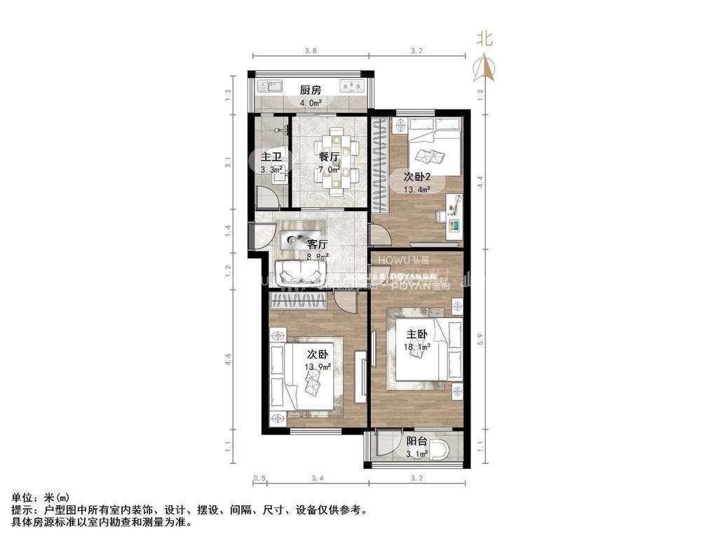 朝向南北 建筑面积95㎡