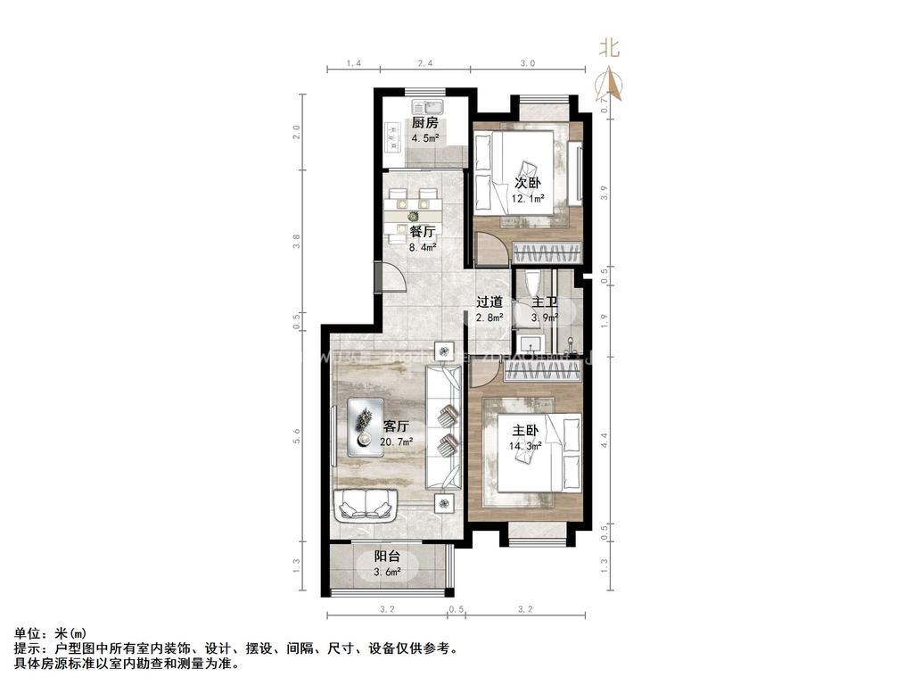 朝向南北 建筑面积91㎡