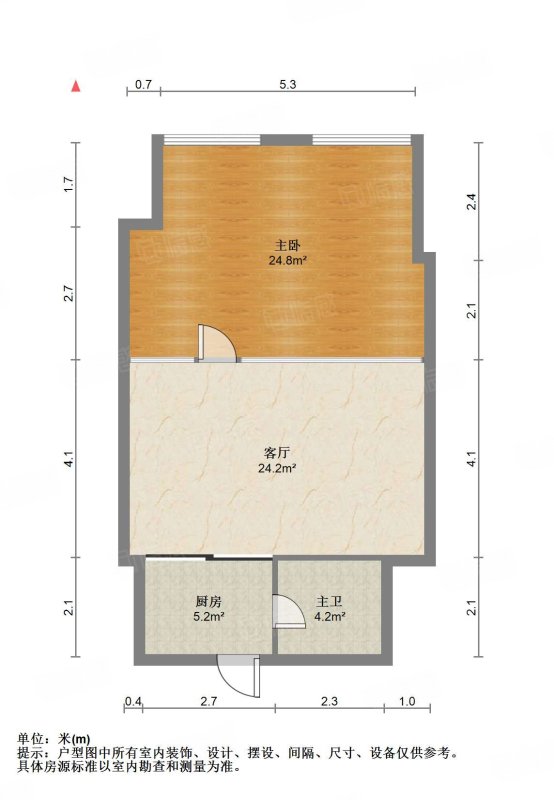 厅室1室1厅1卫1阳台