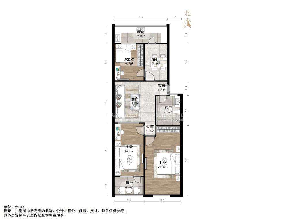 朝向南北 建筑面积107㎡