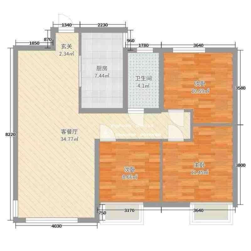 厅室3室2厅1卫1阳台