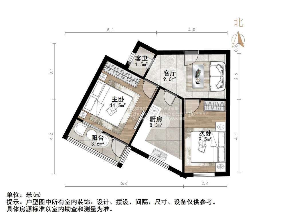 朝向南 建筑面积51.07㎡