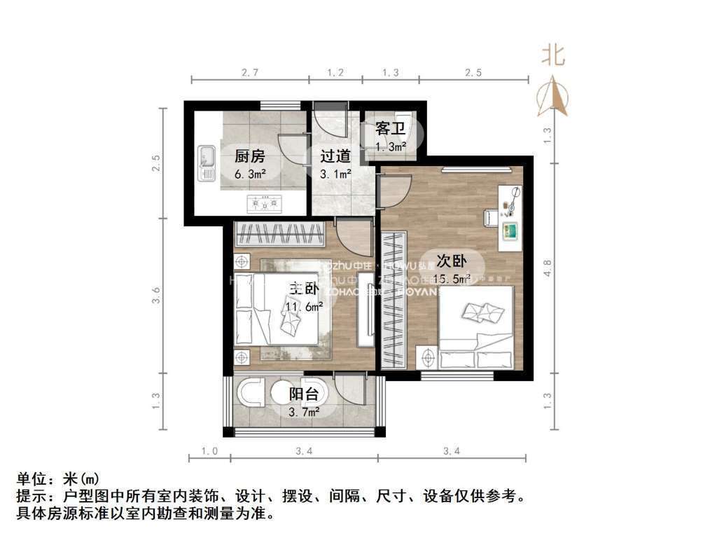 厅室2室1厅1卫1阳台