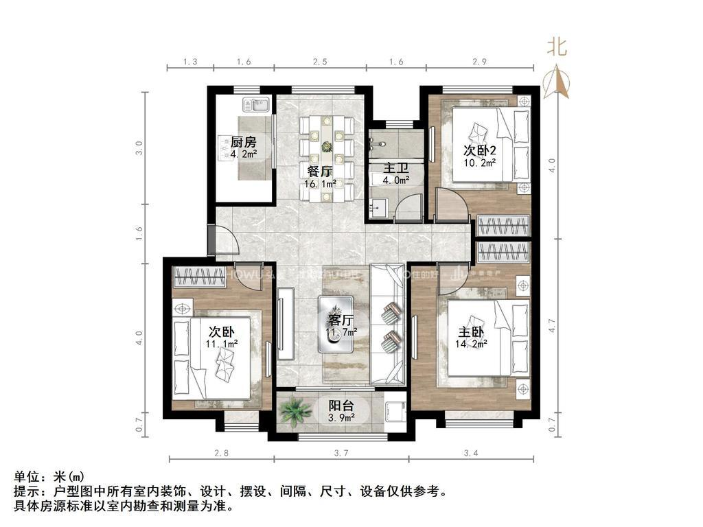 朝向南北 建筑面积114㎡