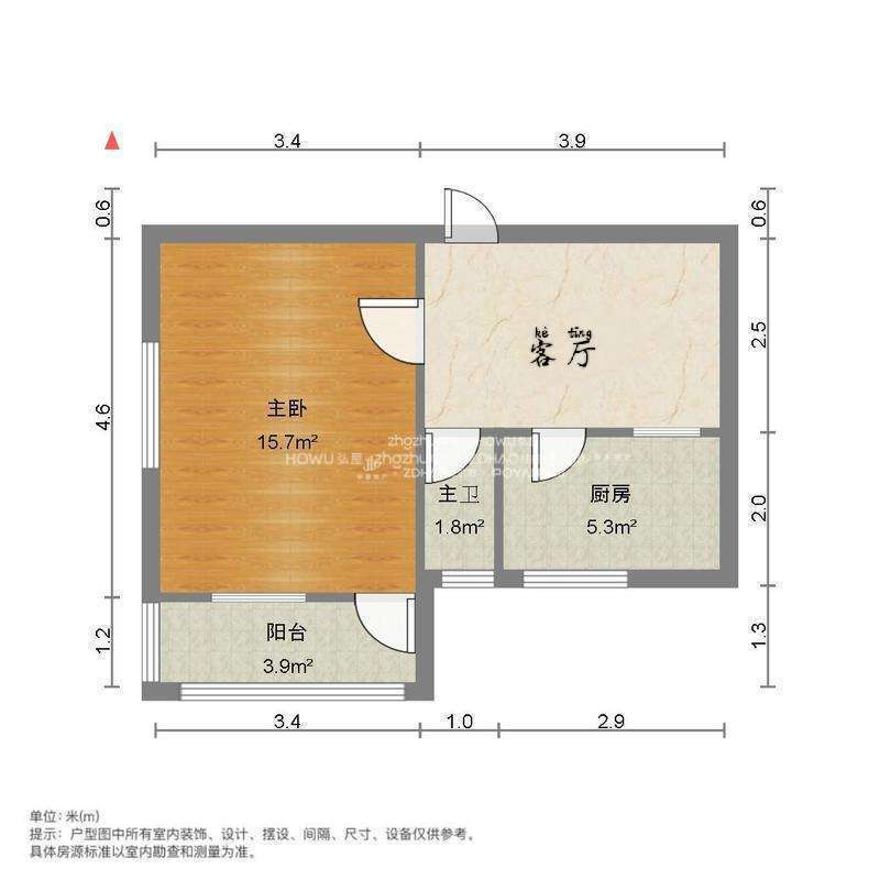 厅室1室1厅1卫1阳台