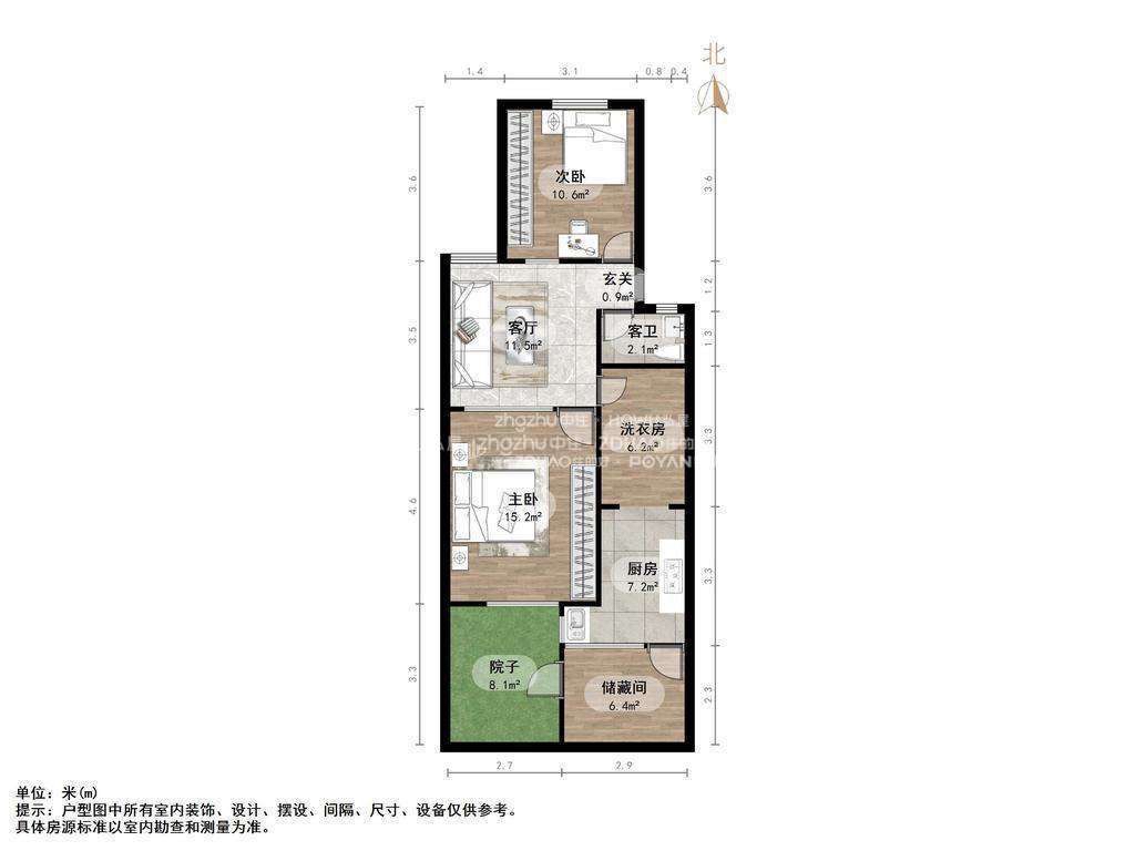 朝向南 建筑面积61.96㎡