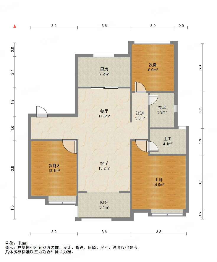 厅室3室1厅1卫1阳台