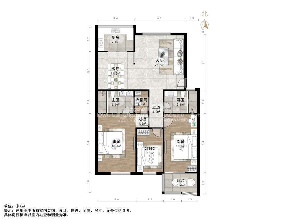 朝向南北 建筑面积133㎡