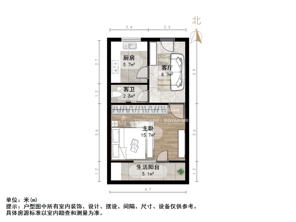 厅室1室1厅1卫1阳台