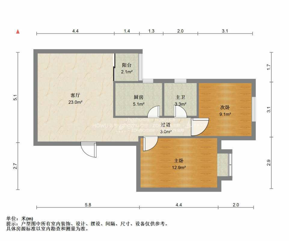 朝向南北 建筑面积68㎡