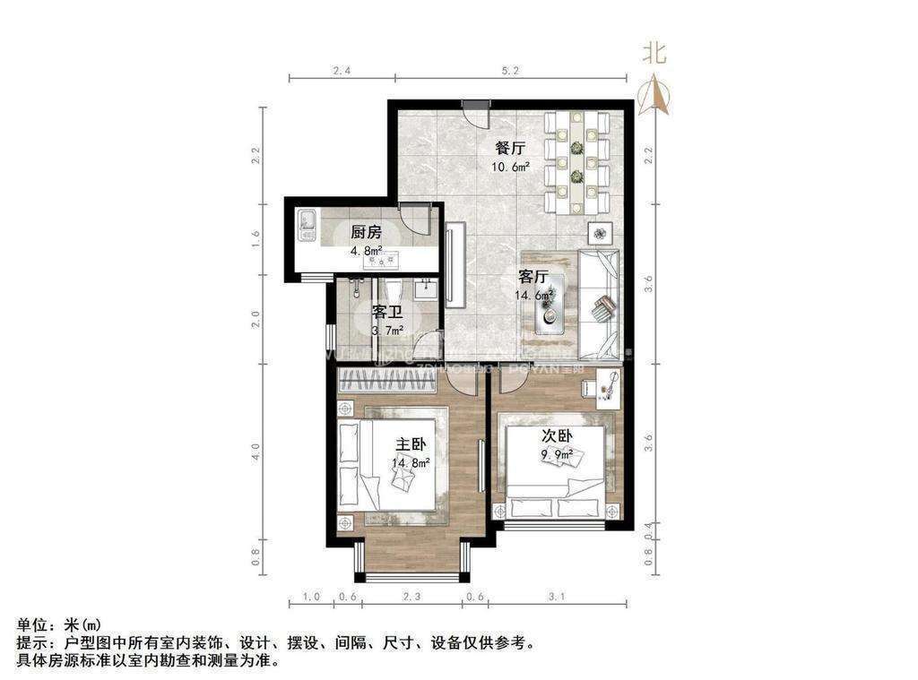 厅室2室1厅1卫1阳台