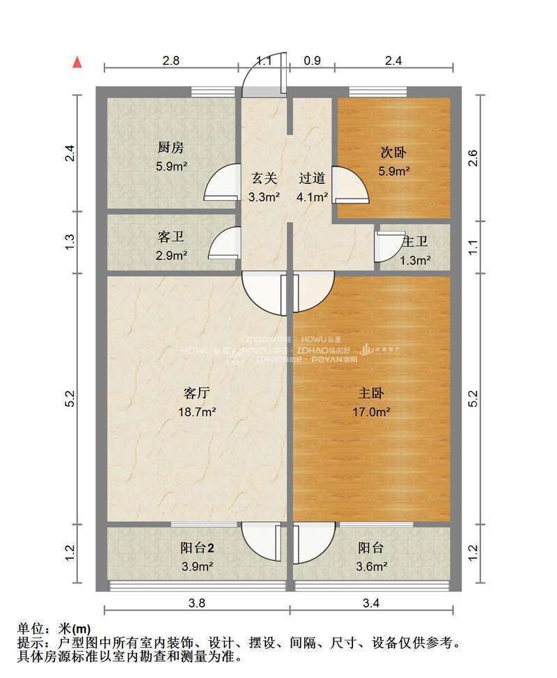 朝向南 建筑面积80㎡