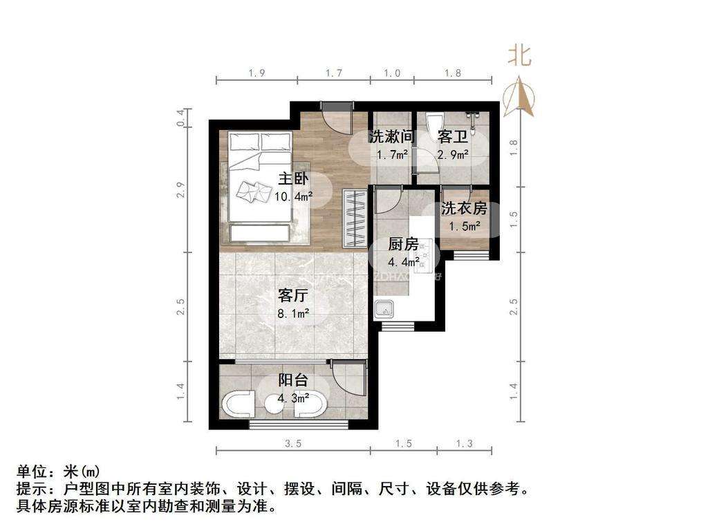 朝向南北 建筑面积48㎡