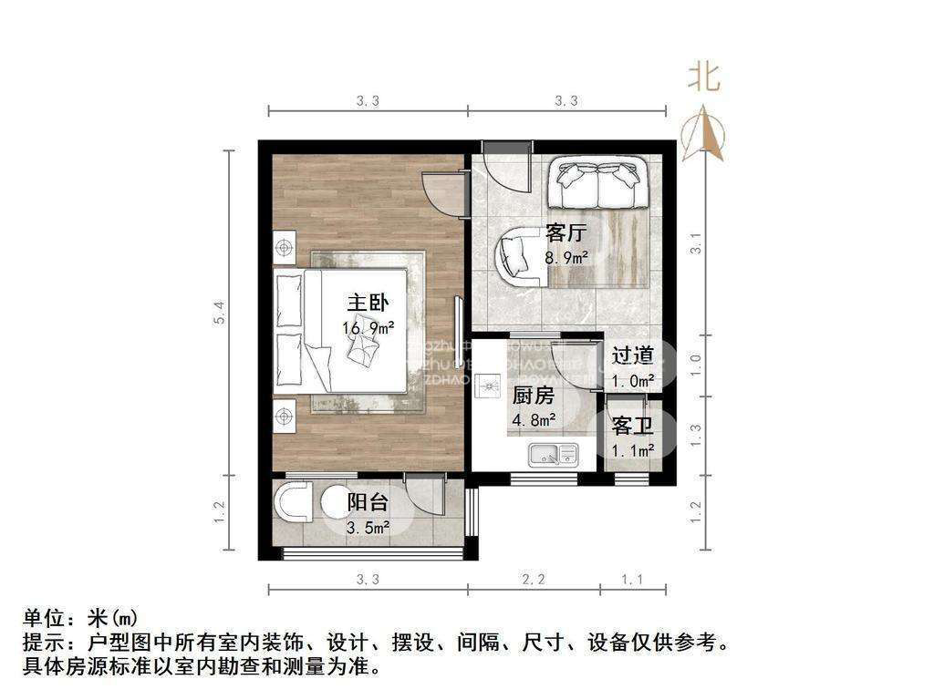 厅室1室1厅1卫1阳台