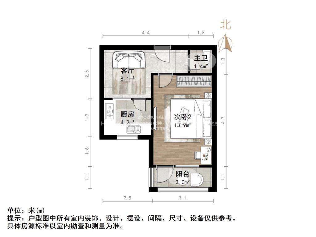 厅室1室1厅1卫1阳台