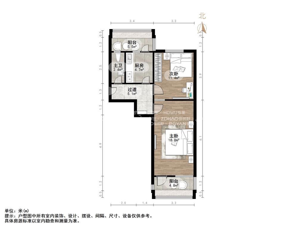 朝向南北 建筑面积60.56㎡