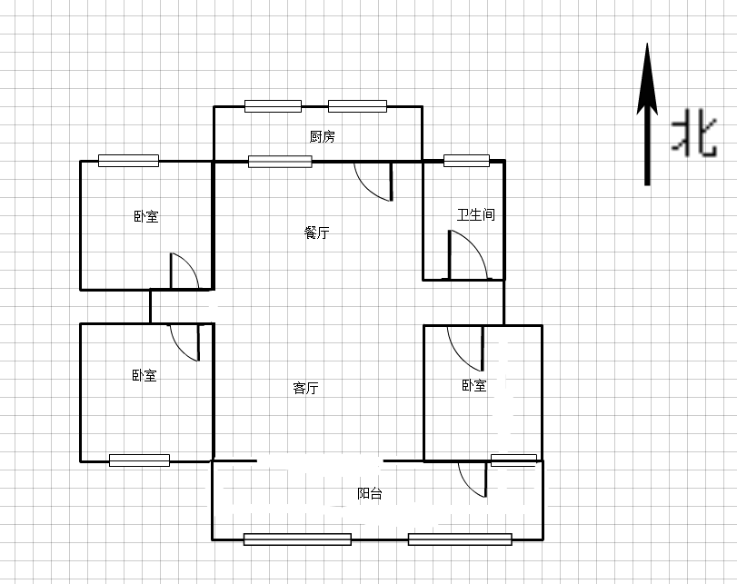 厅室3室2厅1卫1阳台