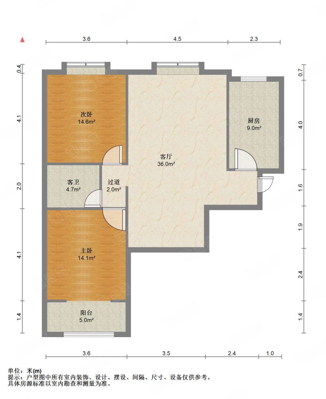 厅室2室2厅1卫1阳台