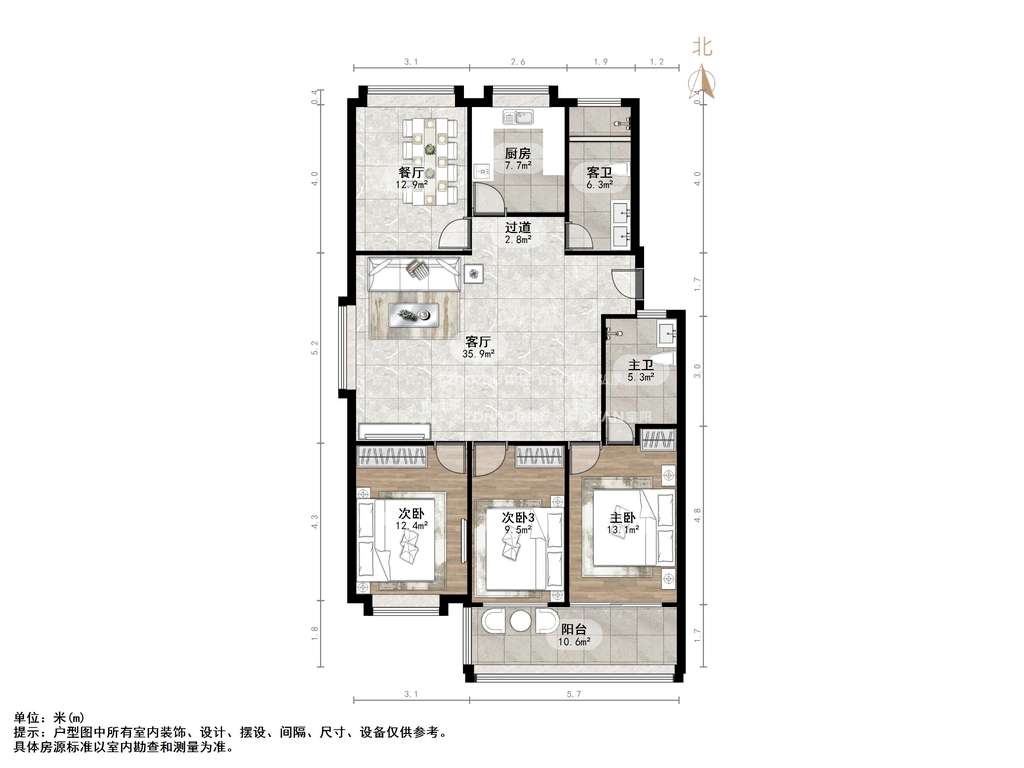 厅室4室2厅2卫1阳台