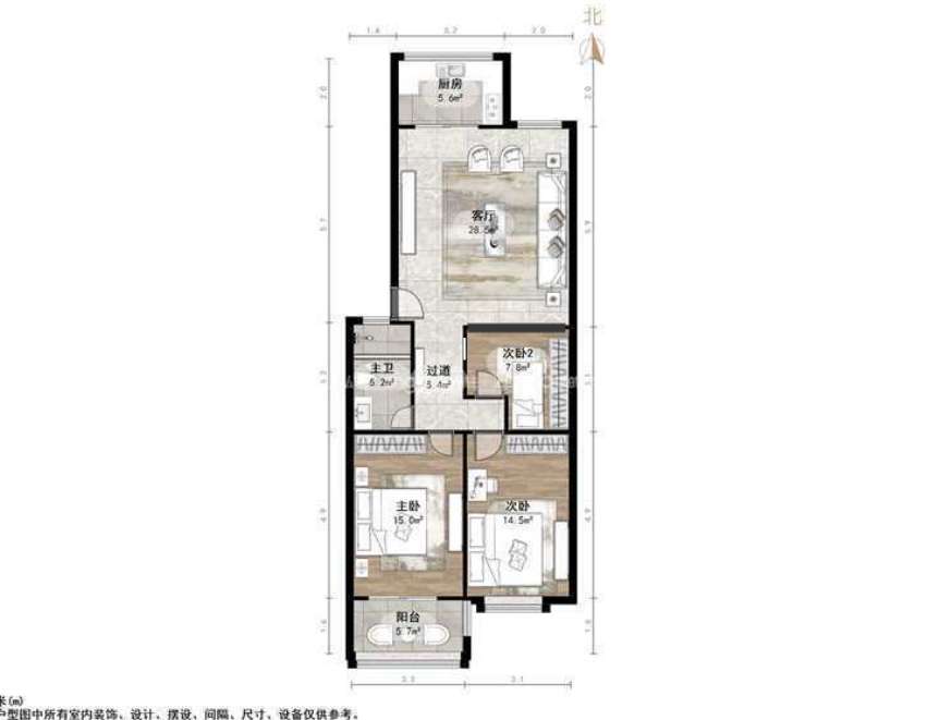 朝向南北 建筑面积103㎡