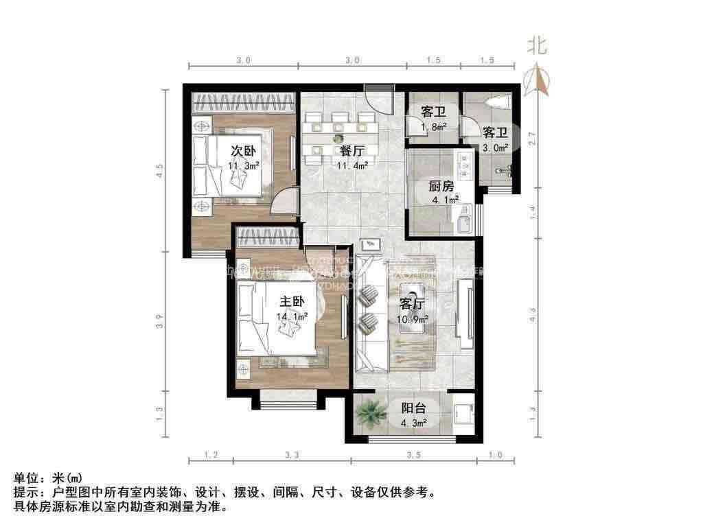 朝向南北 建筑面积93㎡