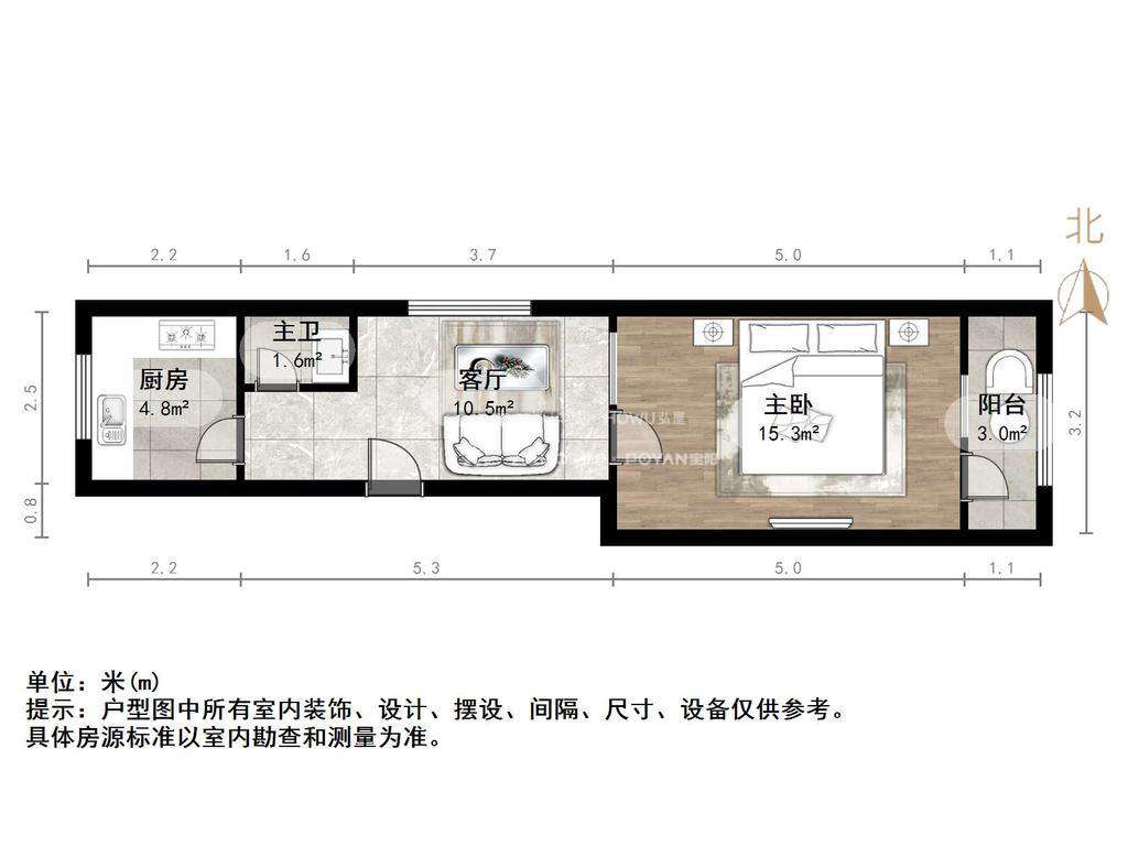 厅室1室1厅1卫1阳台