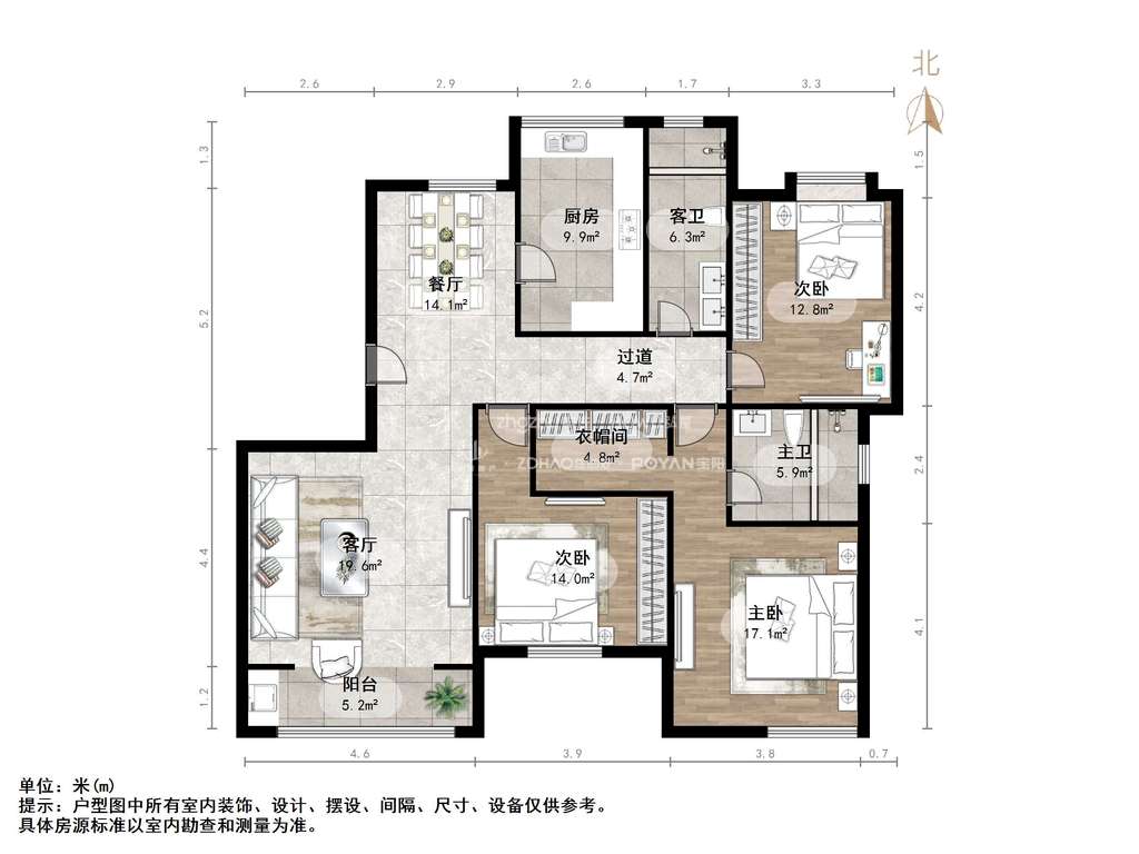 朝向南北 建筑面积153.6㎡