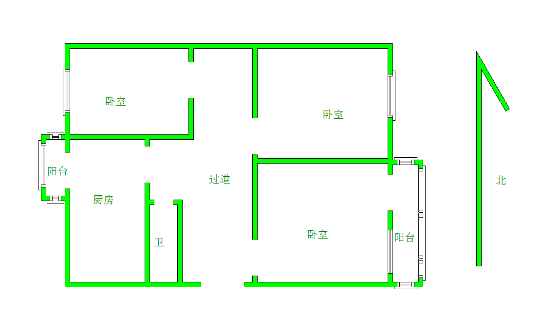 厅室3室1厅1卫1阳台