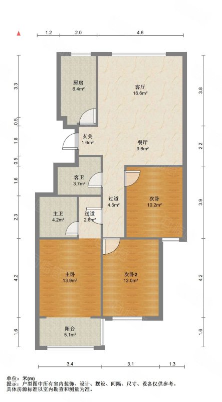 厅室3室2厅2卫2阳台