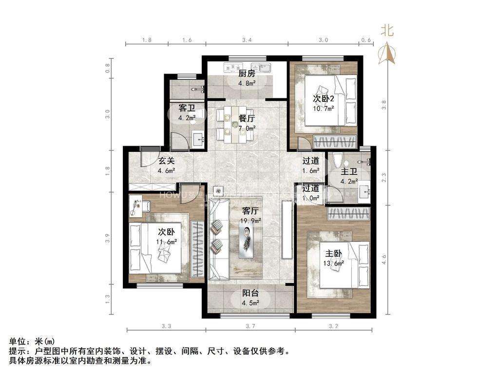 朝向南北 建筑面积125㎡