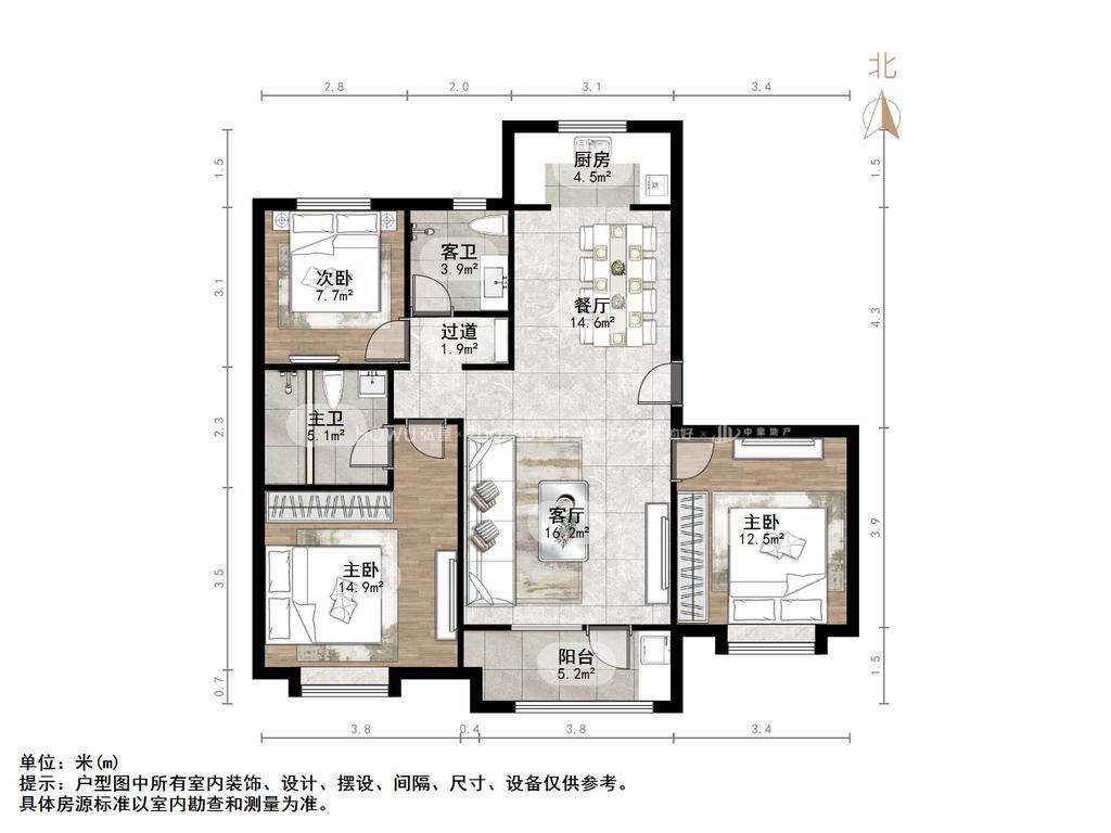 厅室3室2厅2卫1阳台