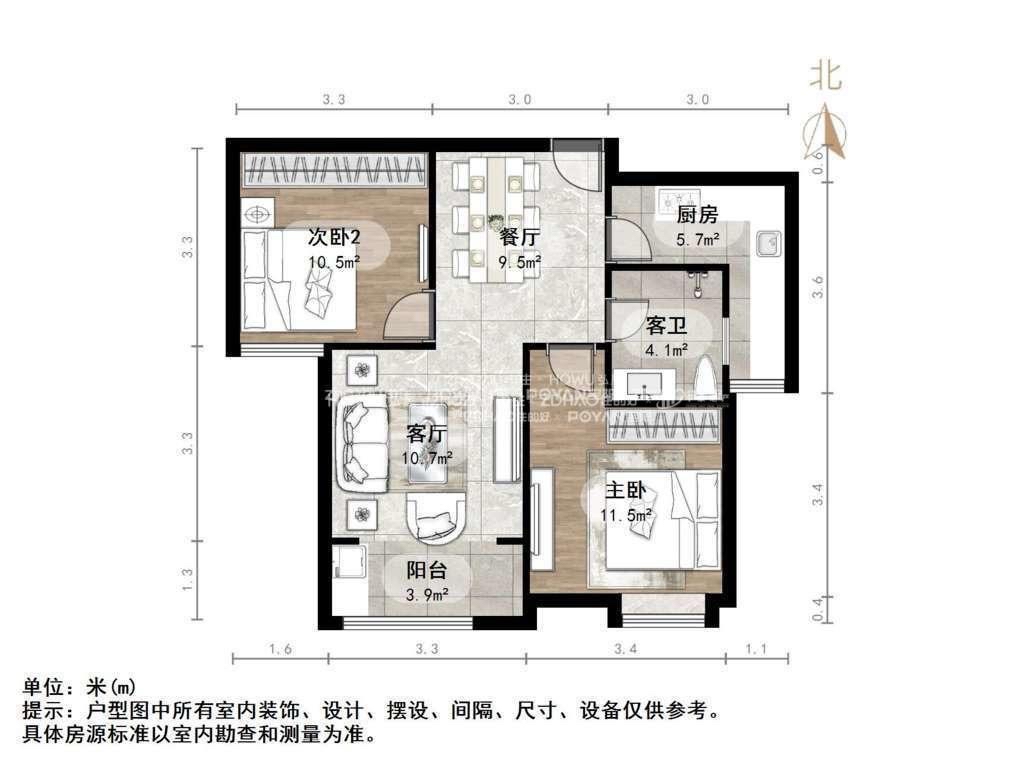 朝向南北 建筑面积83㎡