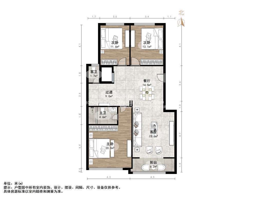 厅室4室3厅3卫2阳台