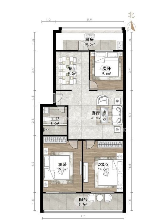 朝向南北 建筑面积105.38㎡