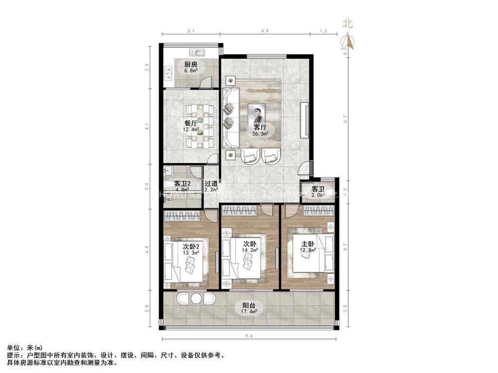 厅室3室2厅1卫0阳台