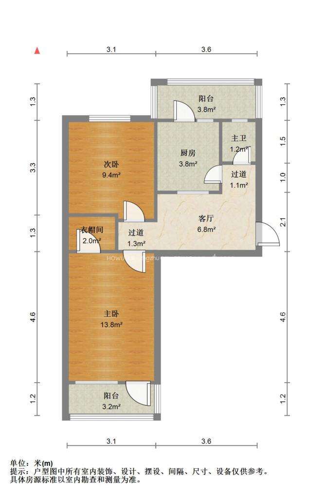 朝向南北 建筑面积64㎡