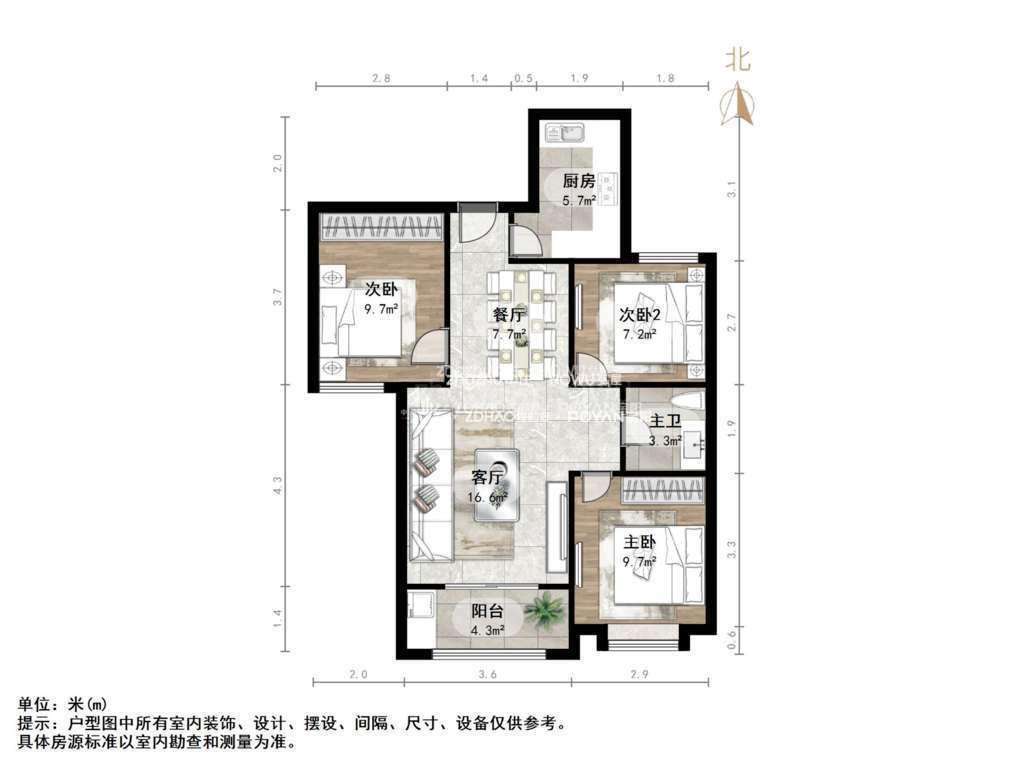 厅室3室2厅1卫2阳台