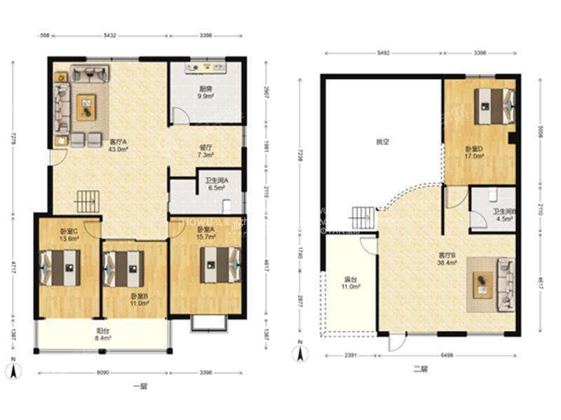 厅室4室1厅2卫3阳台
