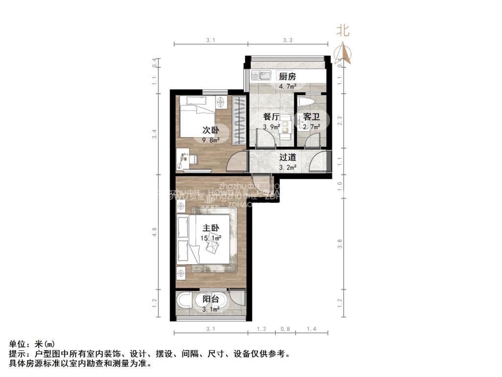 厅室2室1厅1卫1阳台