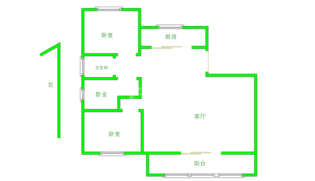厅室3室2厅1卫1阳台