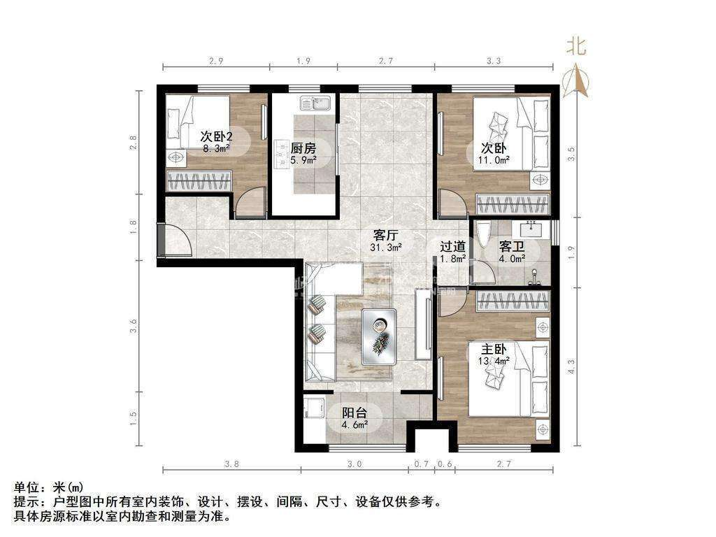 朝向南北 建筑面积116.93㎡