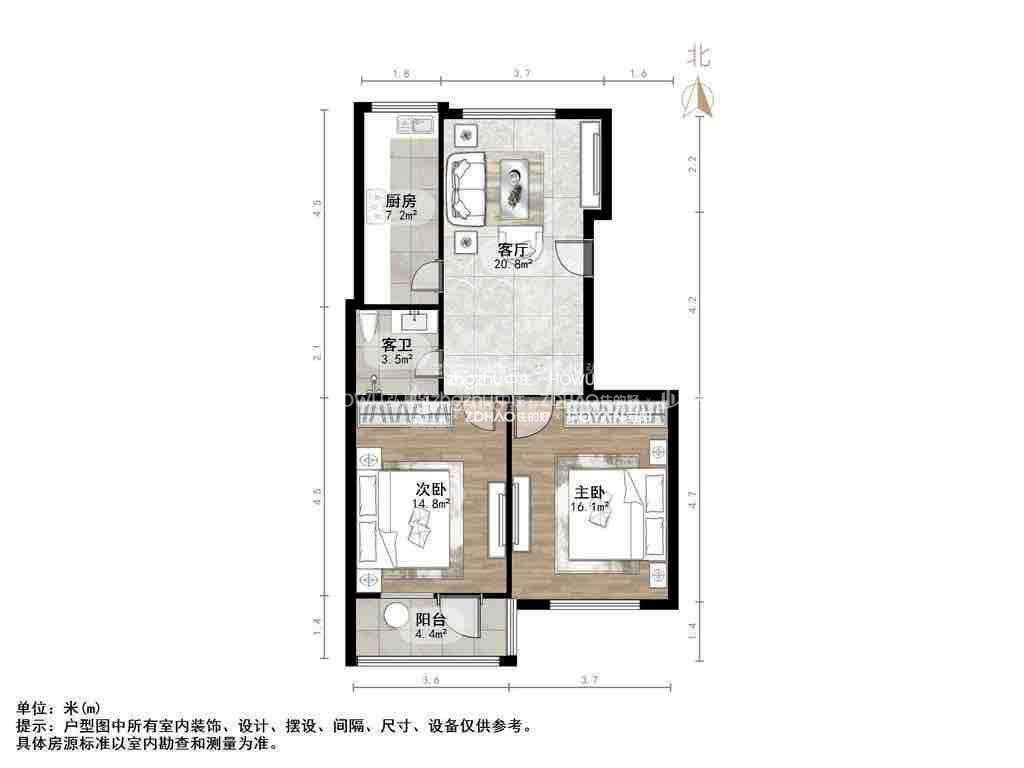 厅室2室1厅1卫1阳台