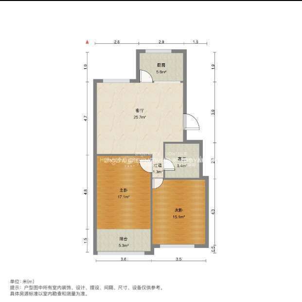 厅室2室2厅1卫1阳台