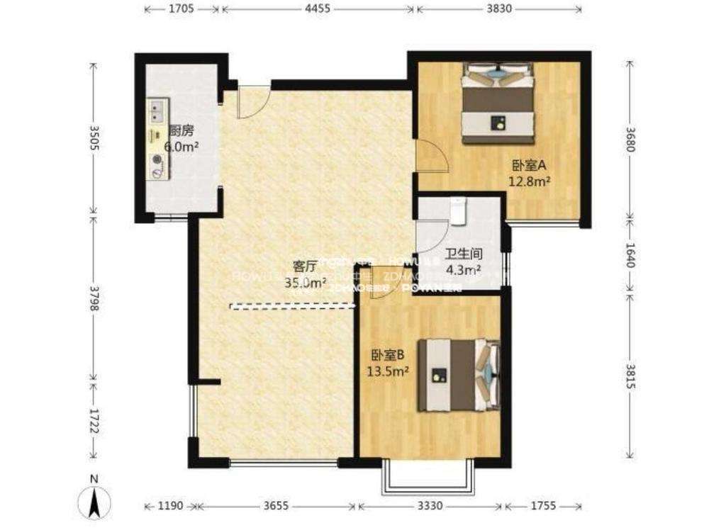 厅室2室2厅1卫1阳台