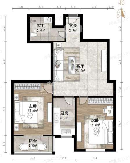 厅室2室2厅1卫1阳台