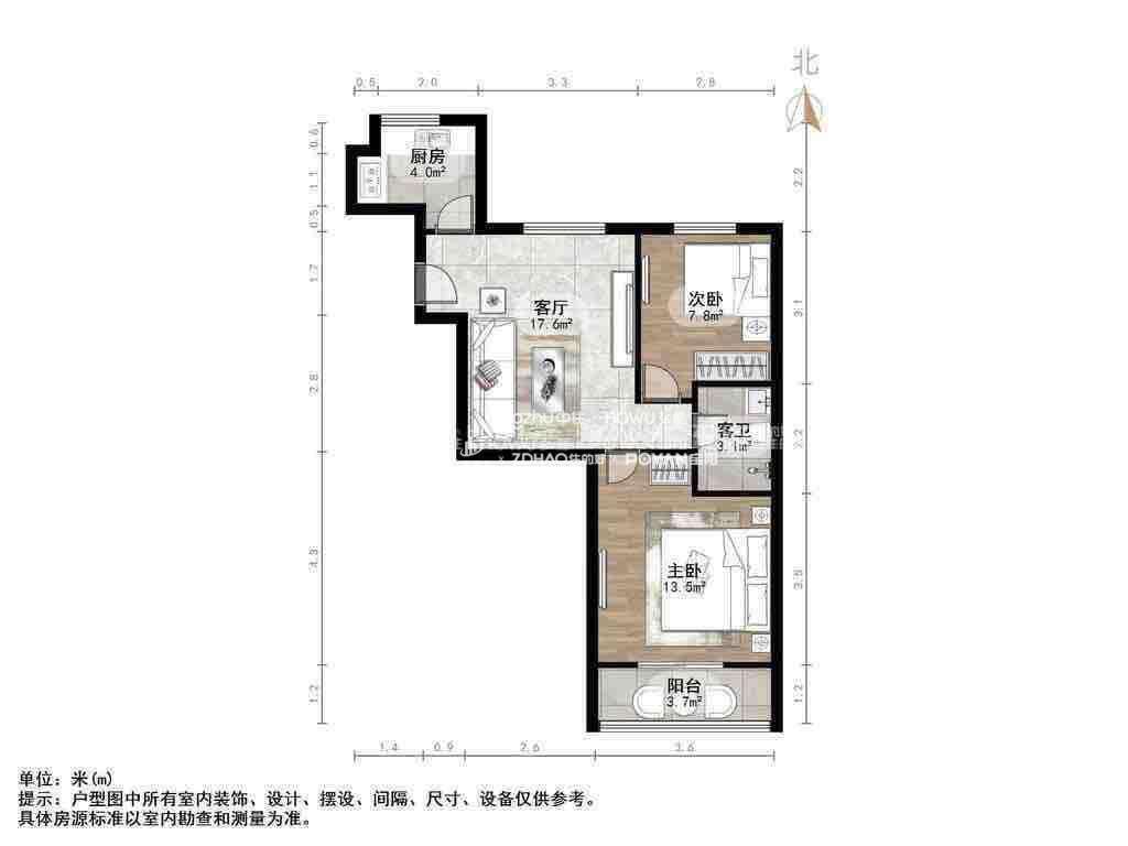 厅室2室2厅1卫1阳台