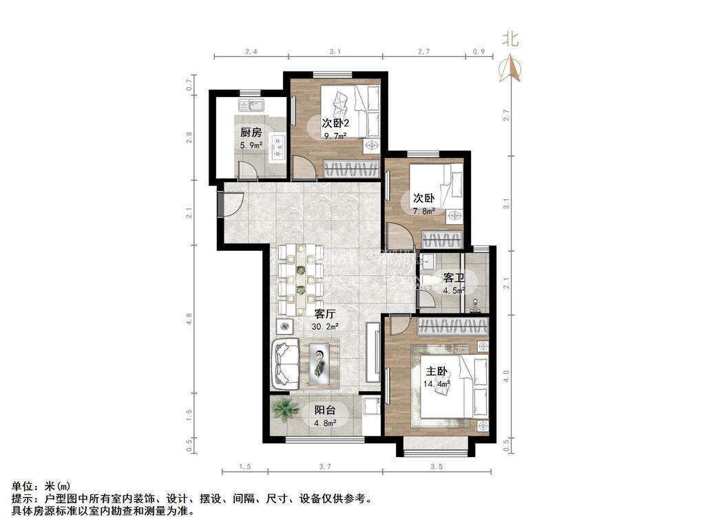 厅室3室2厅1卫1阳台