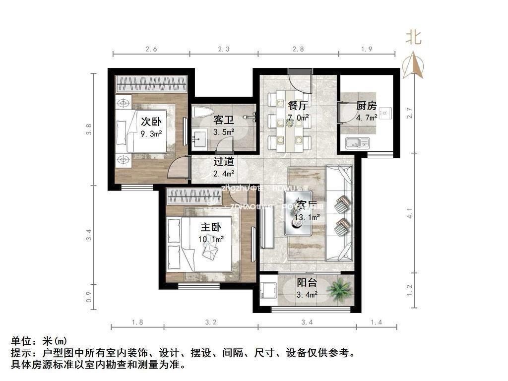 厅室2室1厅1卫1阳台