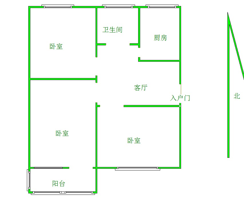 厅室3室1厅1卫1阳台